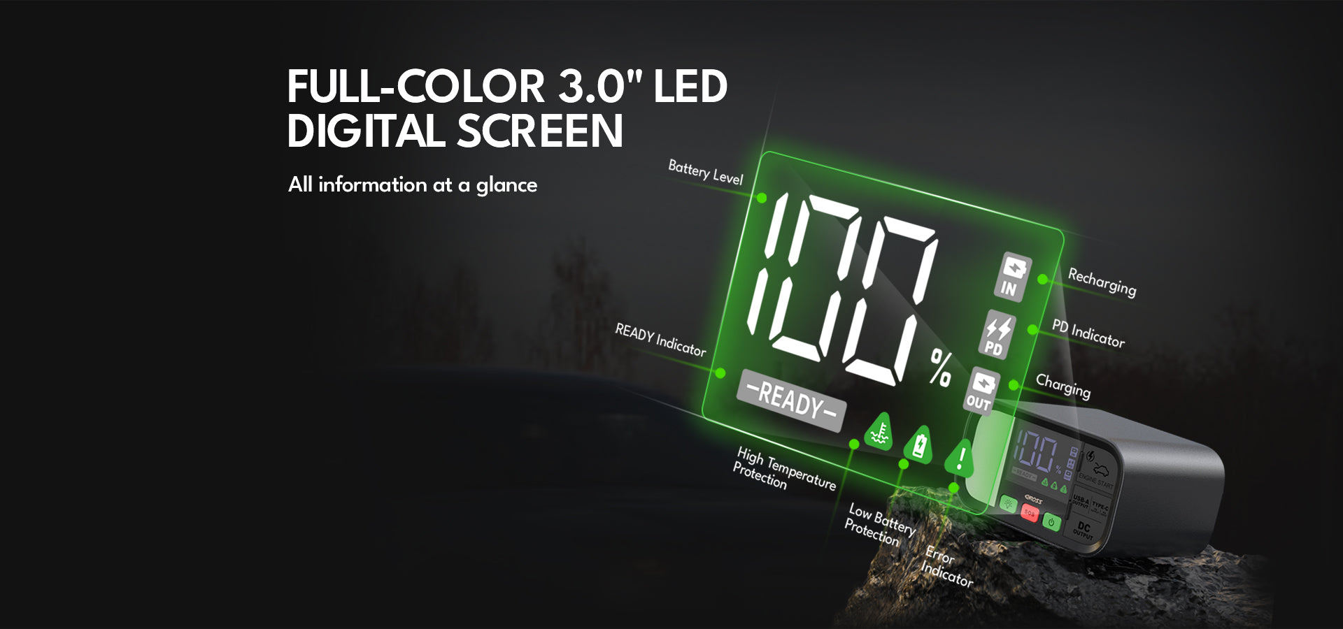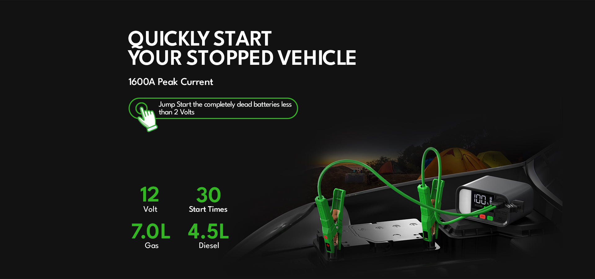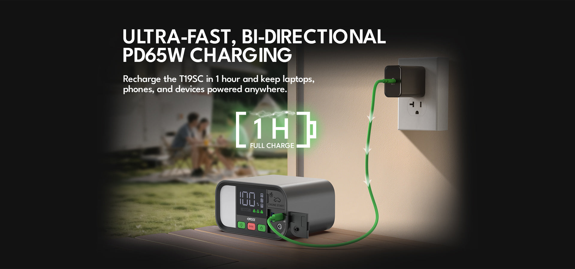 The CAROSS 12V Smart Jump Starter delivers an impressive 1600A of peak power and packs a 16,000mAh lithium-ion battery to bring your car, SUV, and truck back to life in seconds. With its world-exclusive Smart Connect™ technology and green non-polarized Smart lamps™, it's foolproof and safe for anyone to use. Built with a sleek aluminum casing and soft-touch TPU injection, it not only looks premium but also feels durable in your hands. The 3-inch smart digital screen makes everything clear at a glance. Every T19SC jump starter kit comes complete with a rugged carrying case, a DC adapter, and a powerful PD 65W ultra-fast charger- giving you everything you need for convenience at home or on the road.