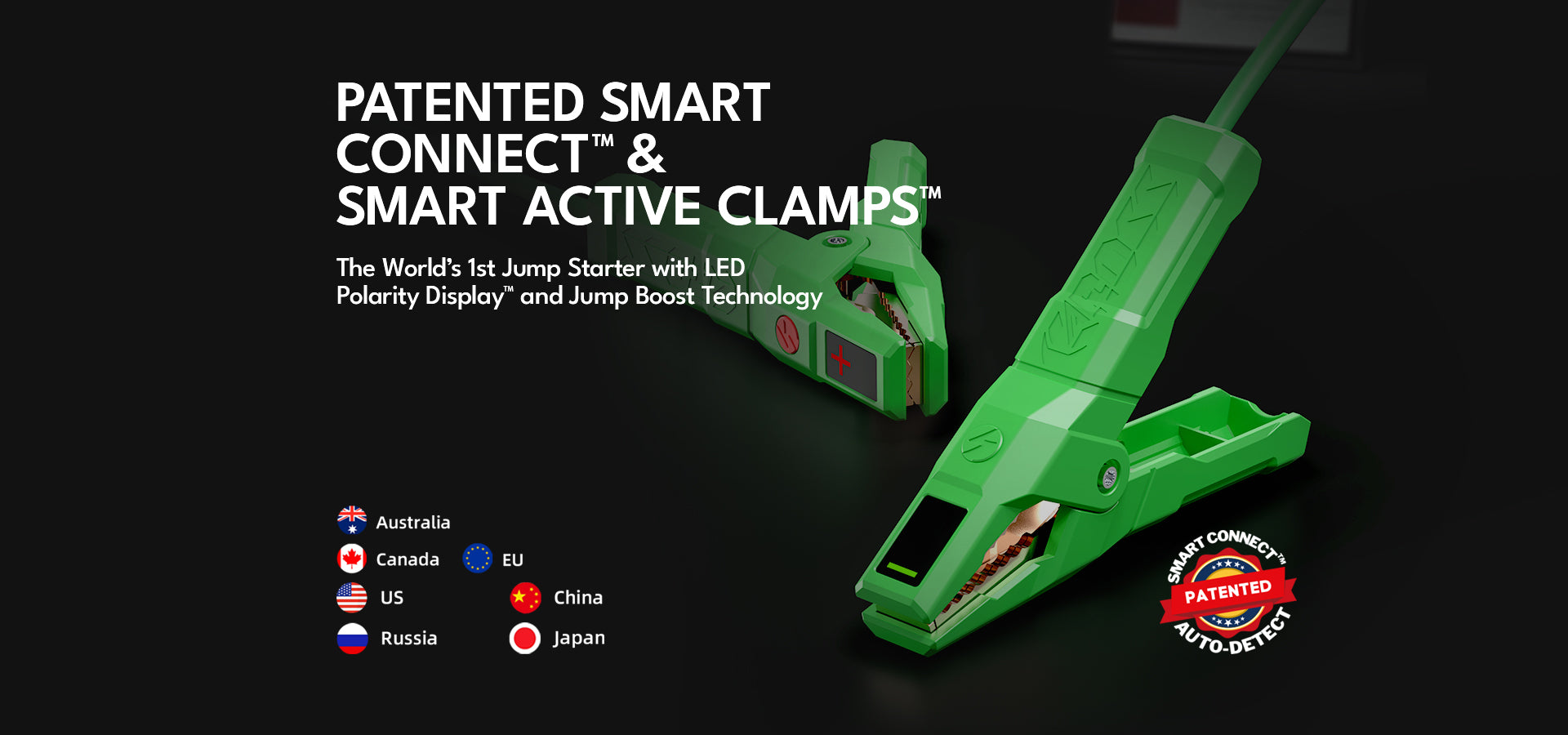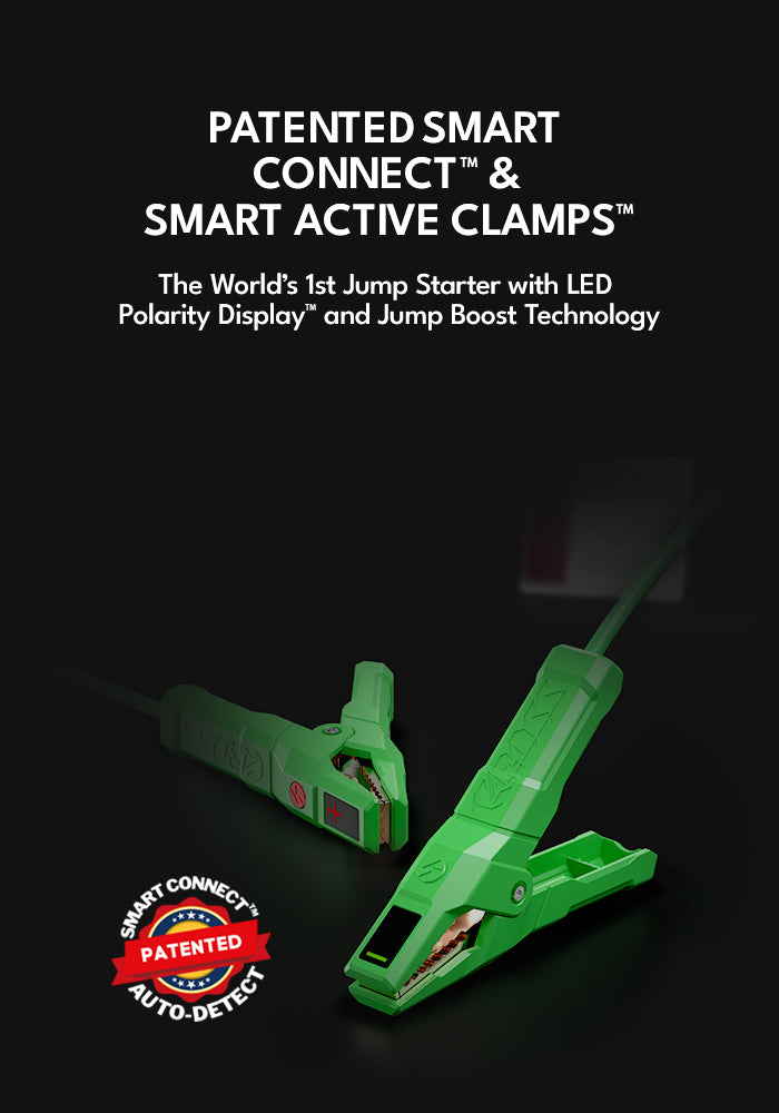 • Patented Smart Connect™ and Smart Clamps™ Technology – Automatic polarity detection for foolproof, safe starts,making it the safest smart jump starter for cars and trucks.