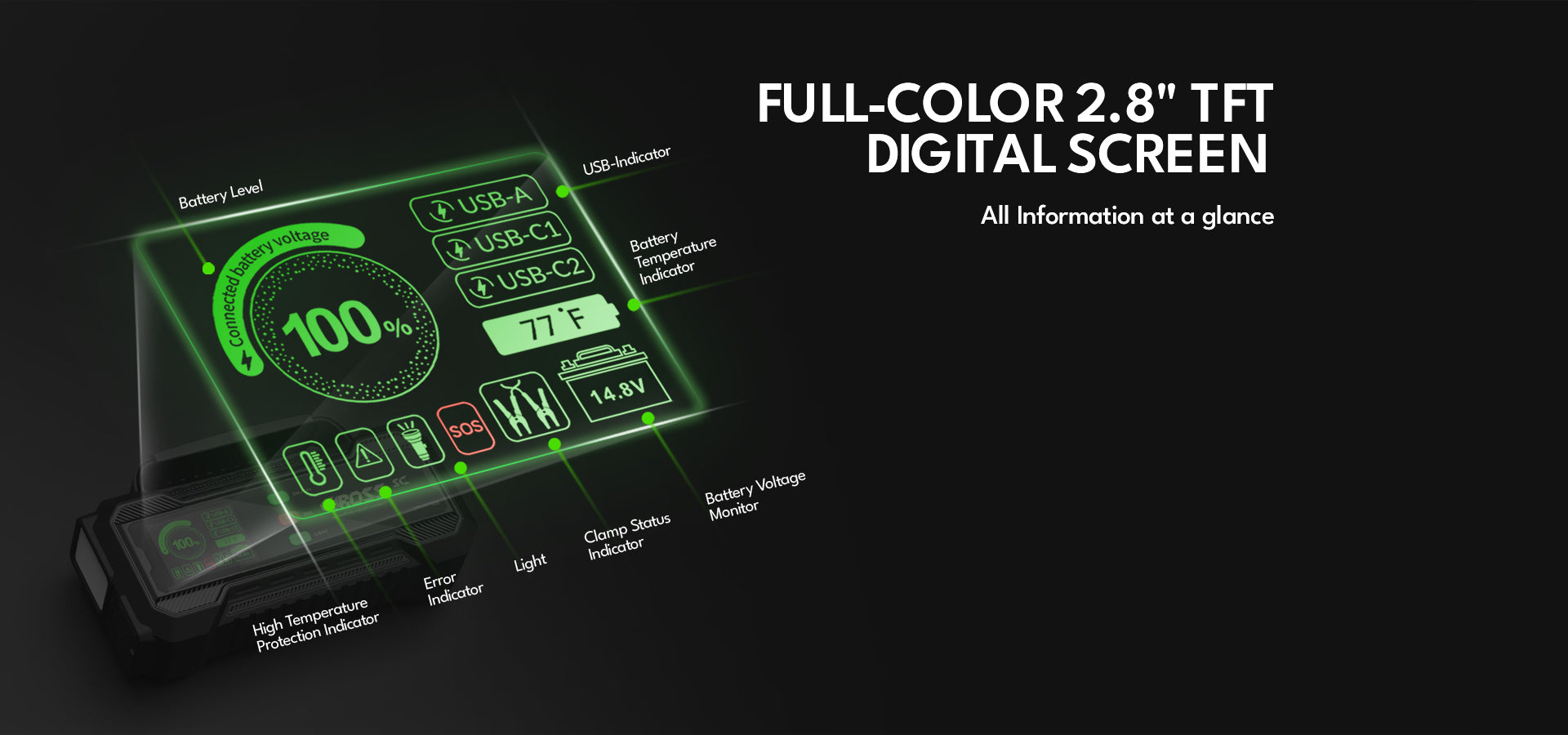 • Full-Color 2.8″ Smart Display – Color-coded indicators and on-screen boost guidance for smarter operation