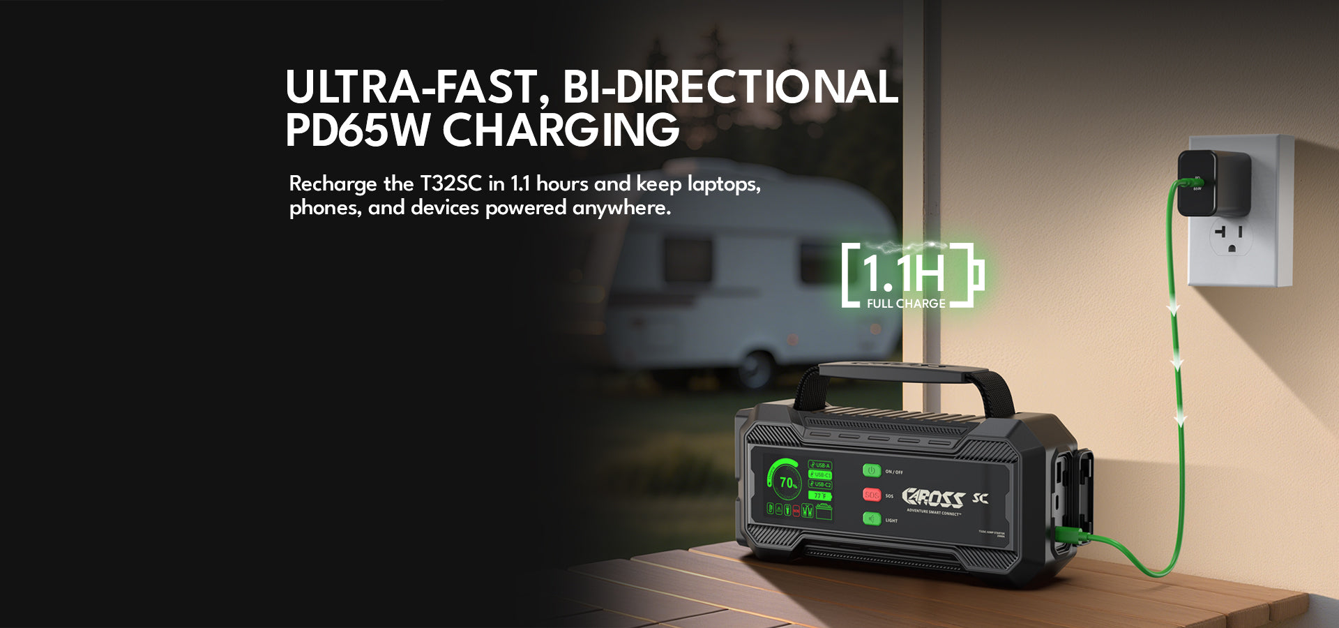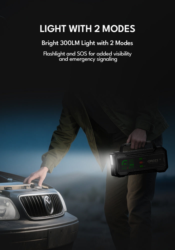 The CAROSS T32SC is a next-generation 2000A portable car battery jump starter featuring Patented Smart Connect™ and Smart Clamps™ Technology. Designed for both power and safety, it delivers foolproof performance with IP65-rated durability, PD65W ultra-fast charging, and a full-color 2.8” smart display that guides you step by step. Perfect for cars, trucks, SUVs, and marine use, it’s your ultimate roadside emergency tool.