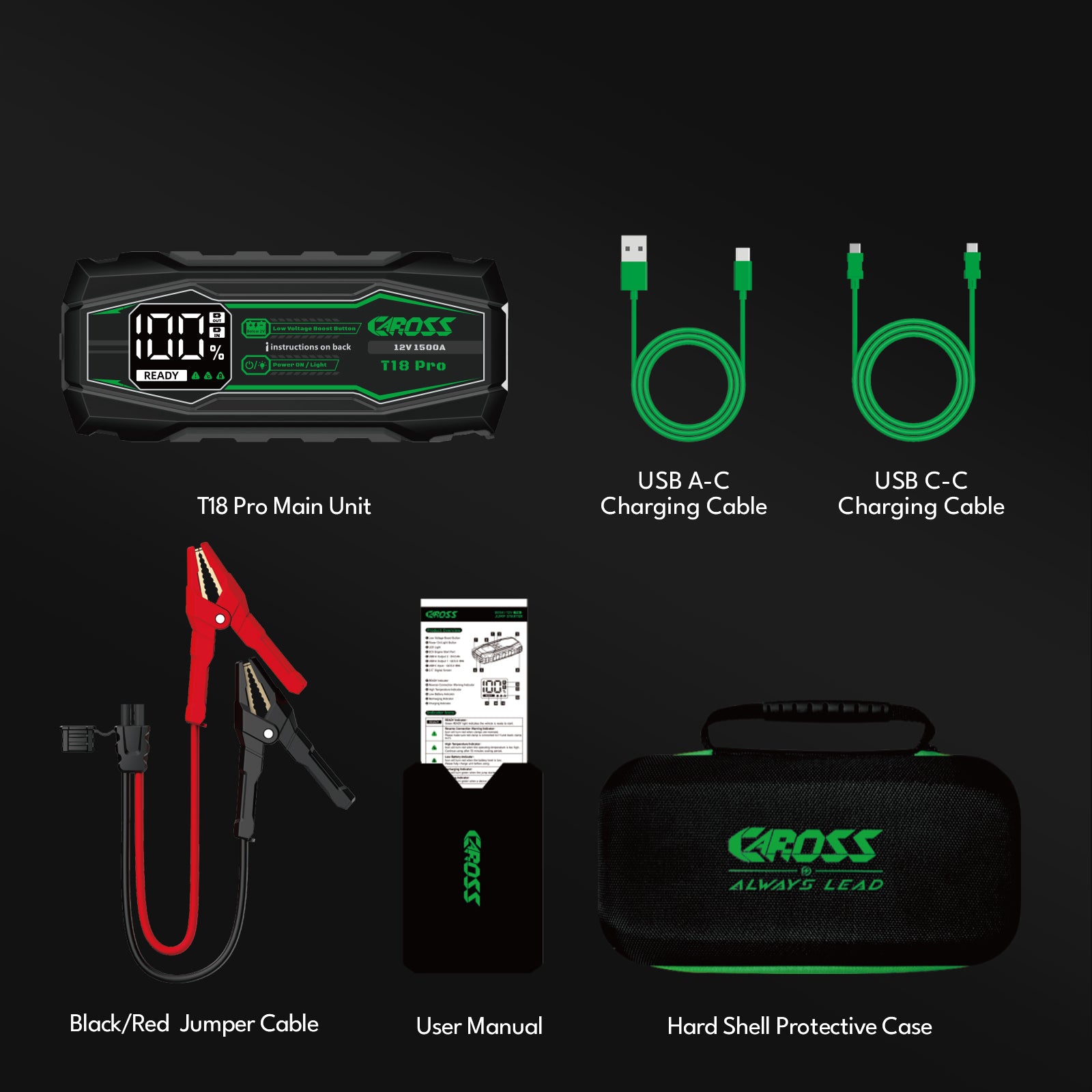 Complete Set Includes Smart Inflator, Charging Cable, Adapters, Jumper Cable, and Carry Case for Ultimate Convenience