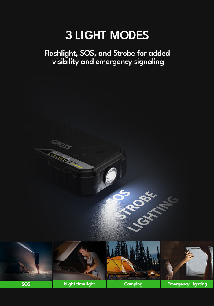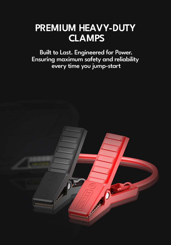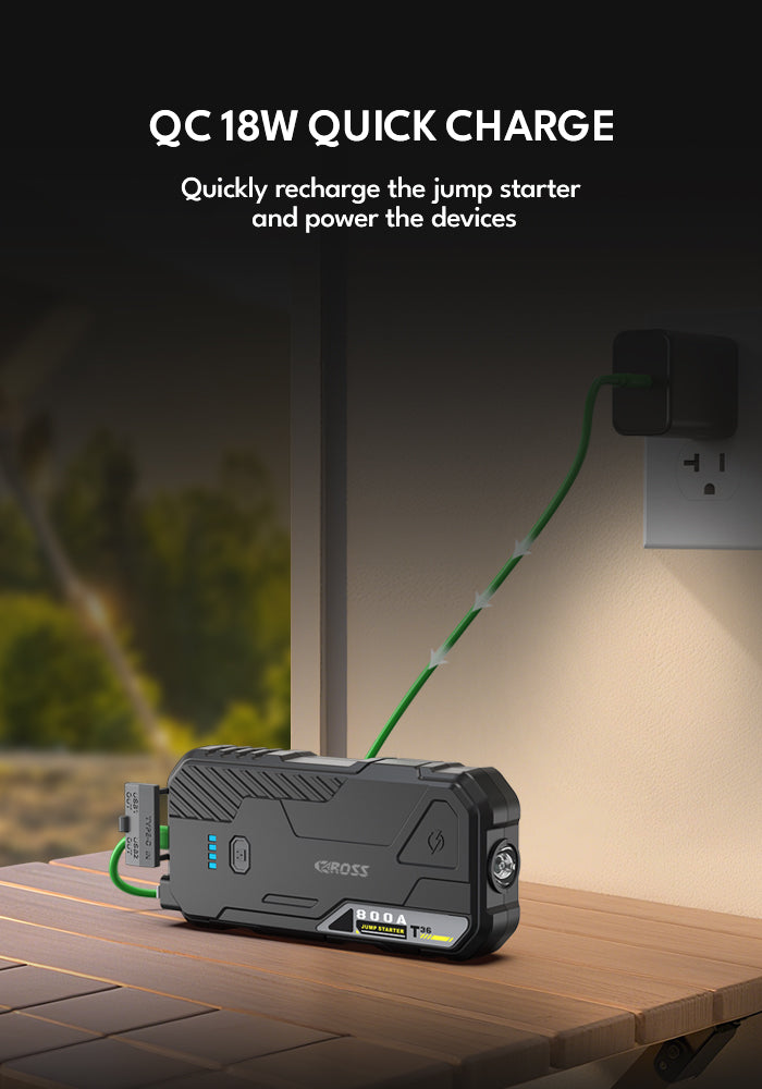 The CAROSS T36 Portable Jump Starter delivers reliable 12V power in a compact, lightweight design built for commuters, new drivers, and family vehicles.Available in multiple color options, it’s as stylish as it is practical, featuring Smart Clamp Technology for spark-proof, foolproof jump-starting safety.Perfect for everyday roadside protection, the T36 provides instant car battery boost when you need it most — all in a portable, affordable power bank jump starter you can easily store in your glove box or backpack